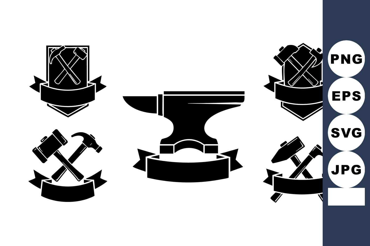 Vector Icon Metal Ribbon Workshop Hammer Industry Tools Blacksmith Anvil