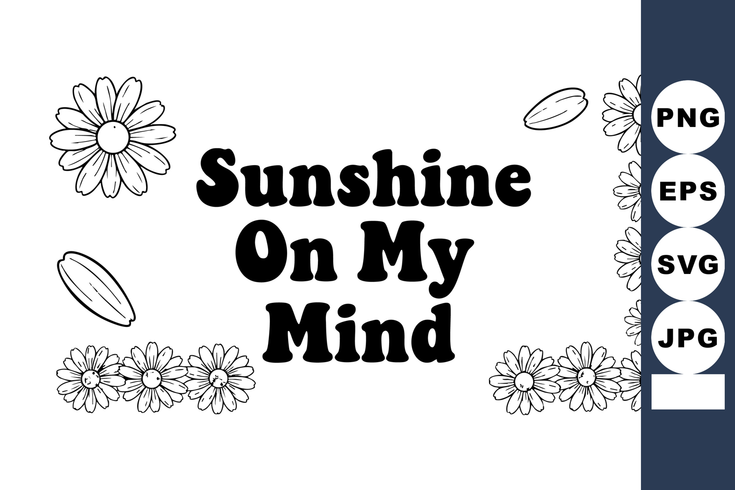 This vector features a charming black and white floral frame with daisy petals surrounding the phrase Sunshine On My Mind. The design is simple and elegant, evoking a lighthearted mood.