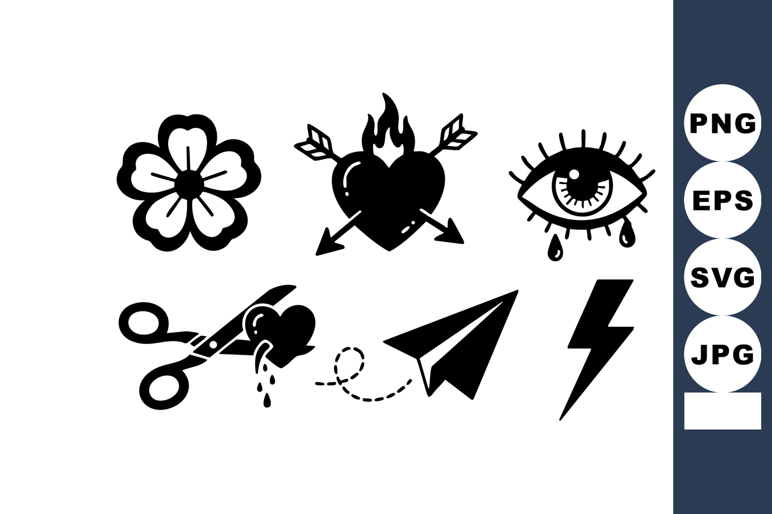 Illustration Vector Icon Black Arrows Scissors Flower Heart Eye Tears