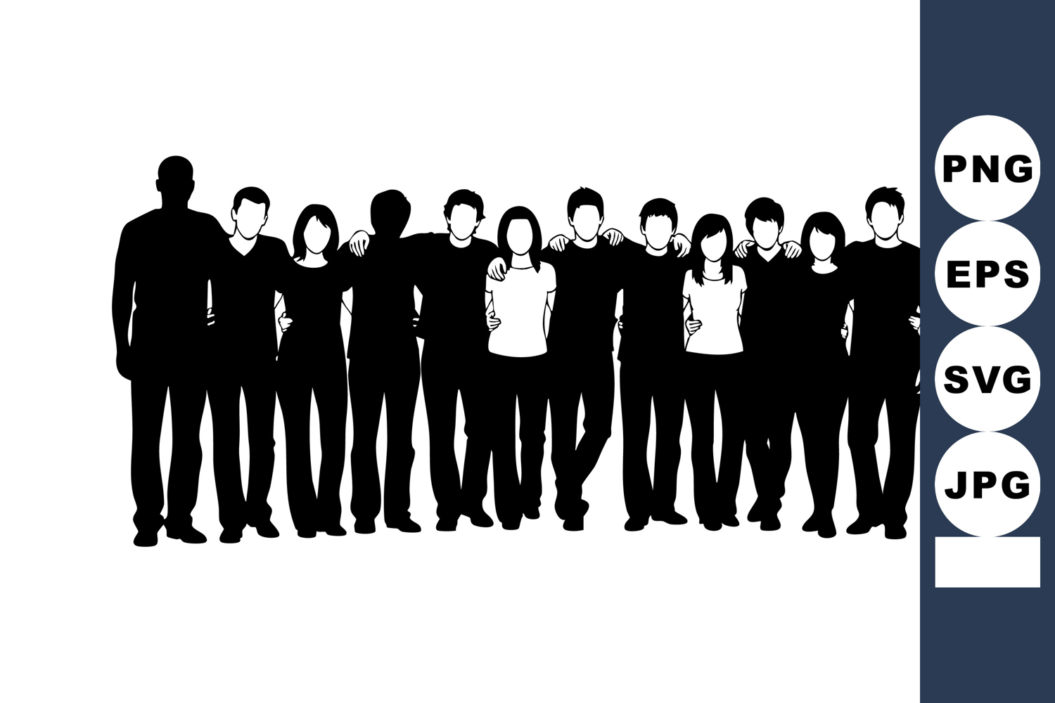 Silhouettes of diverse people standing side by side symbolizing unity and solidarity in a community setting. The image conveys support and togetherness. Inspirational mood.