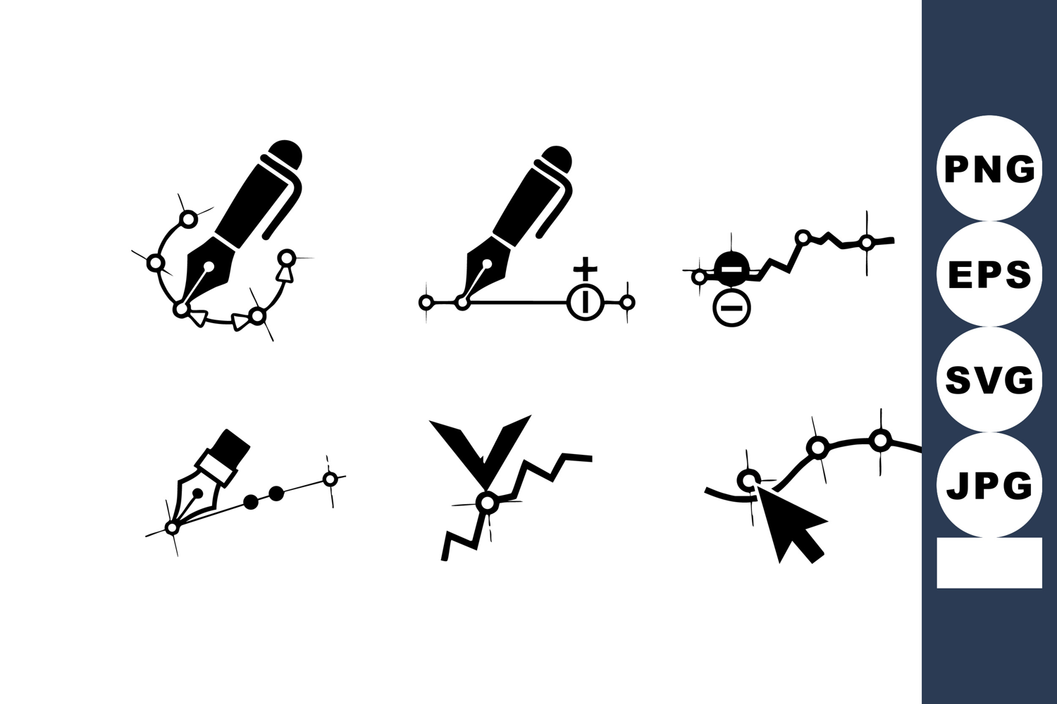Similar Design Products to Vector icons representing pen tool path editing with anchor
