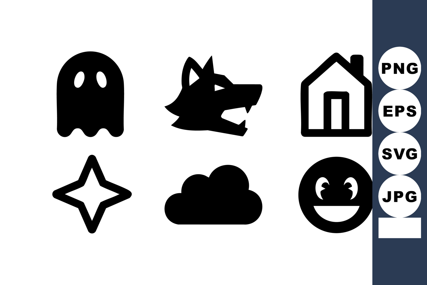 Icon Black Silhouette Wolf Face Ghost Star House Cloud Smiley