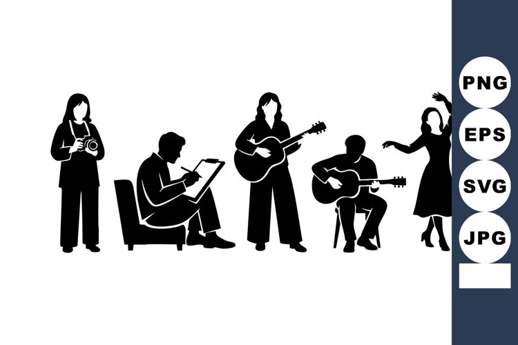 Similar Design Products to Silhouette musicians playing saxophone guitar and dancing wo