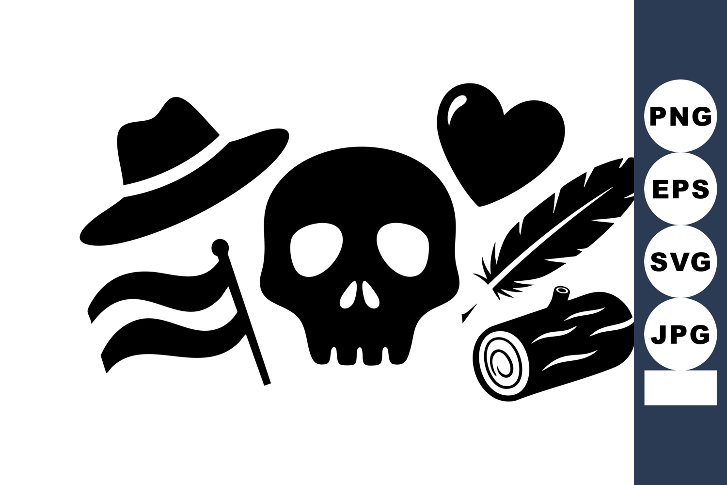 Pirate-themed black silhouette set with skull hat feather fl example image 1