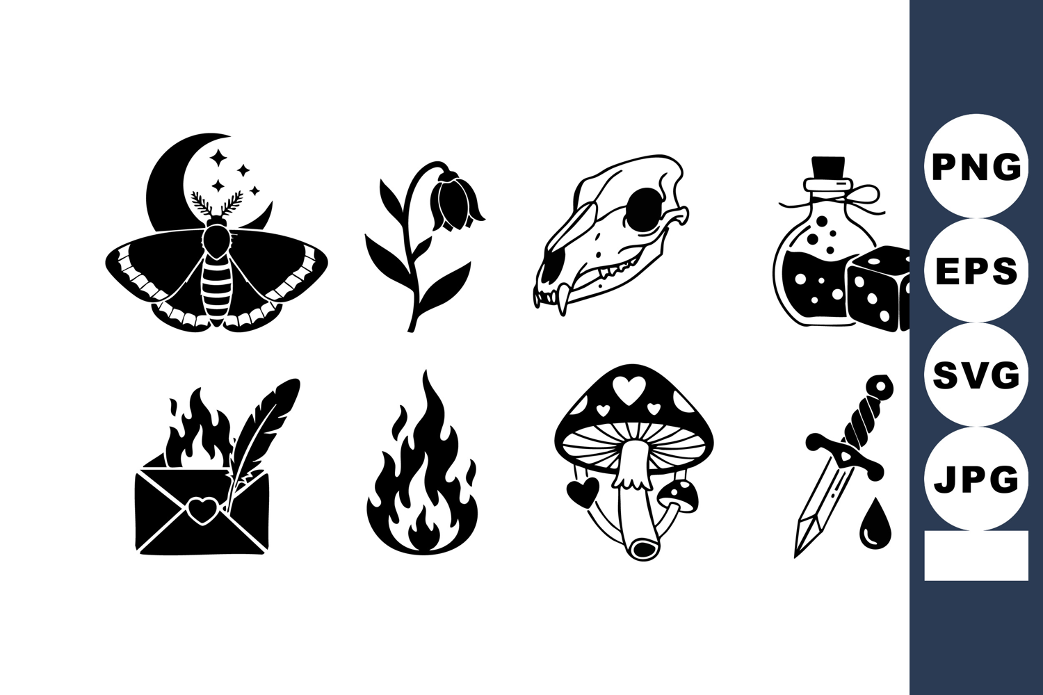 Animal Vector Gothic Skull Flower Silhouette Bottle Moth Potion Dice