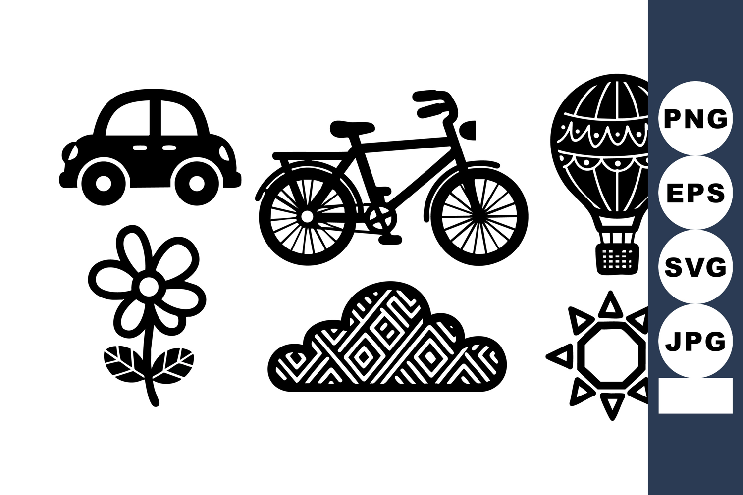 Icon Sun Flower Travel Silhouette Bicycle Car Balloon Cloud Leisure