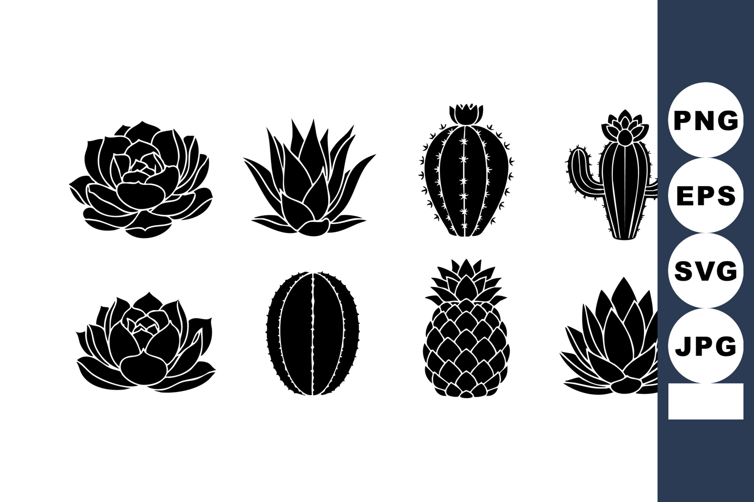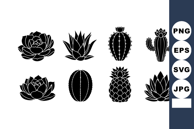 Succulent and cactus black silhouette vector set with pineap example image 1