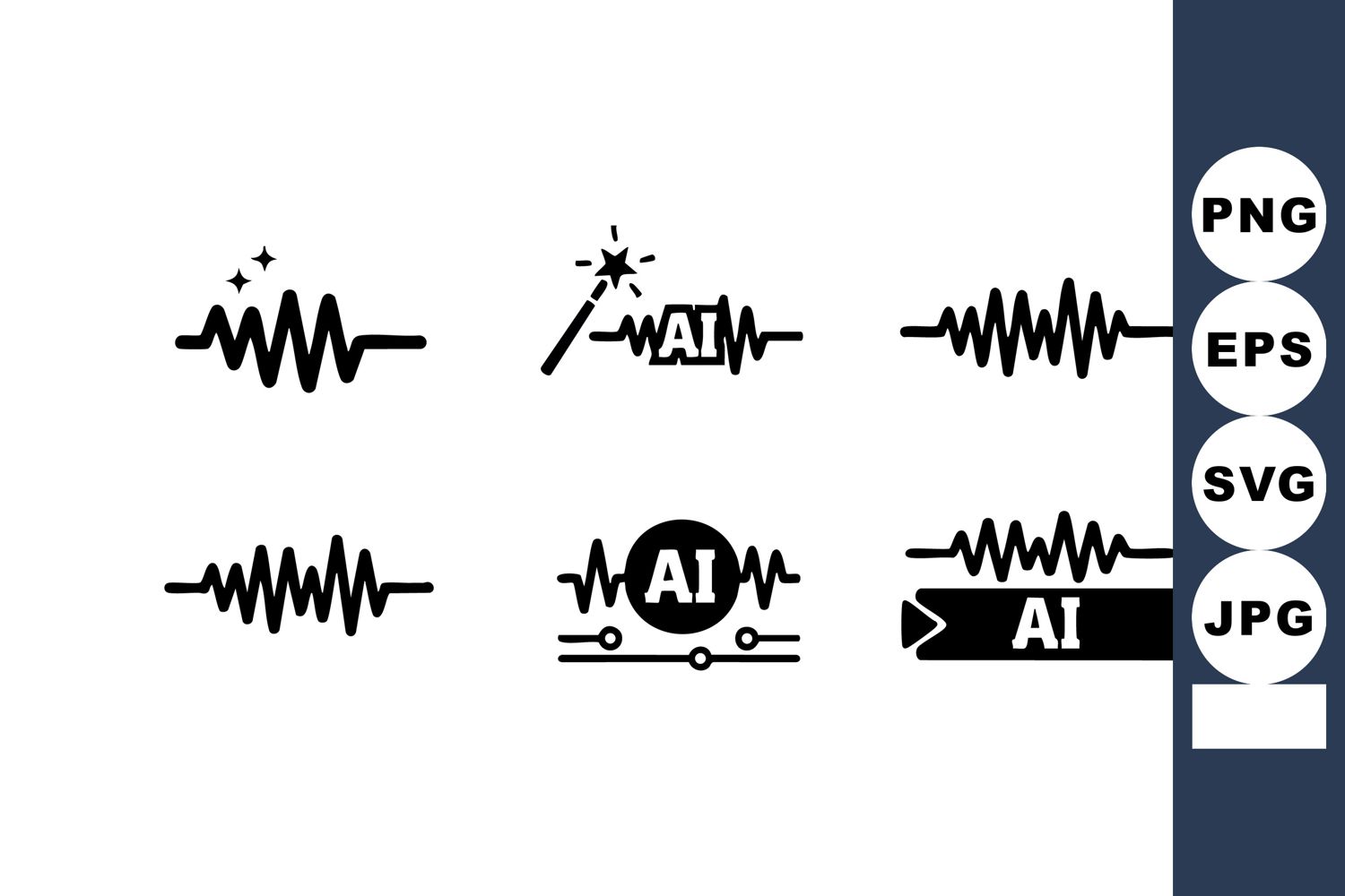 This vector set features artificial intelligence sound wave icons with various editable designs, representing AI technology and communication concepts in a modern style, clean and professional mood.
