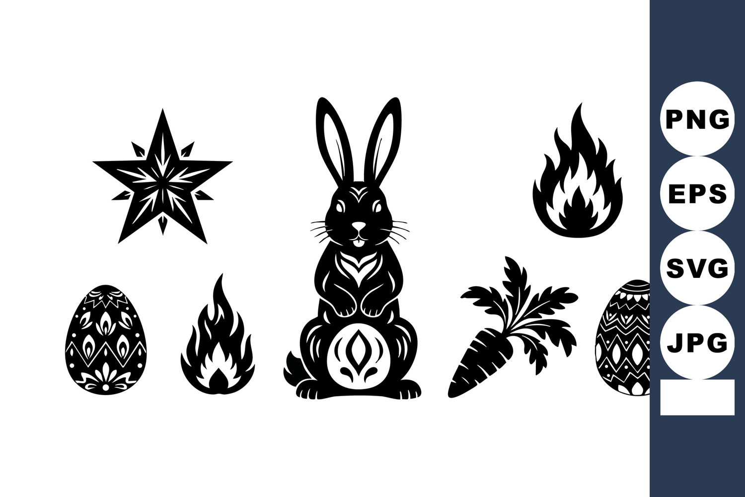 Black Easter Silhouette Bunny Star Rabbit Fire Flame Egg Carrot