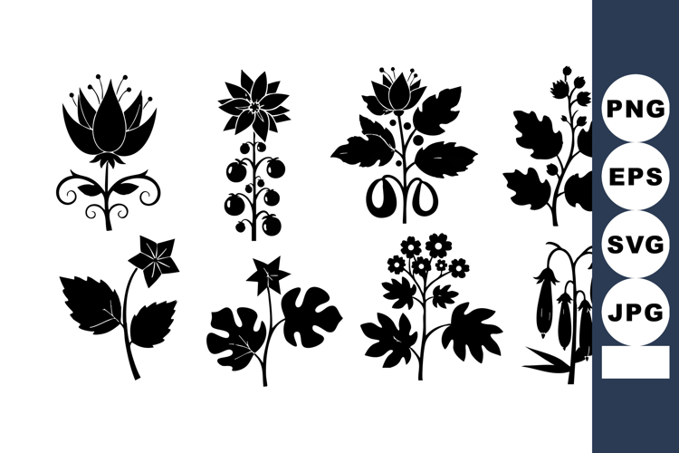Similar Design Products to Black floral silhouettes collection with various leaf and fl