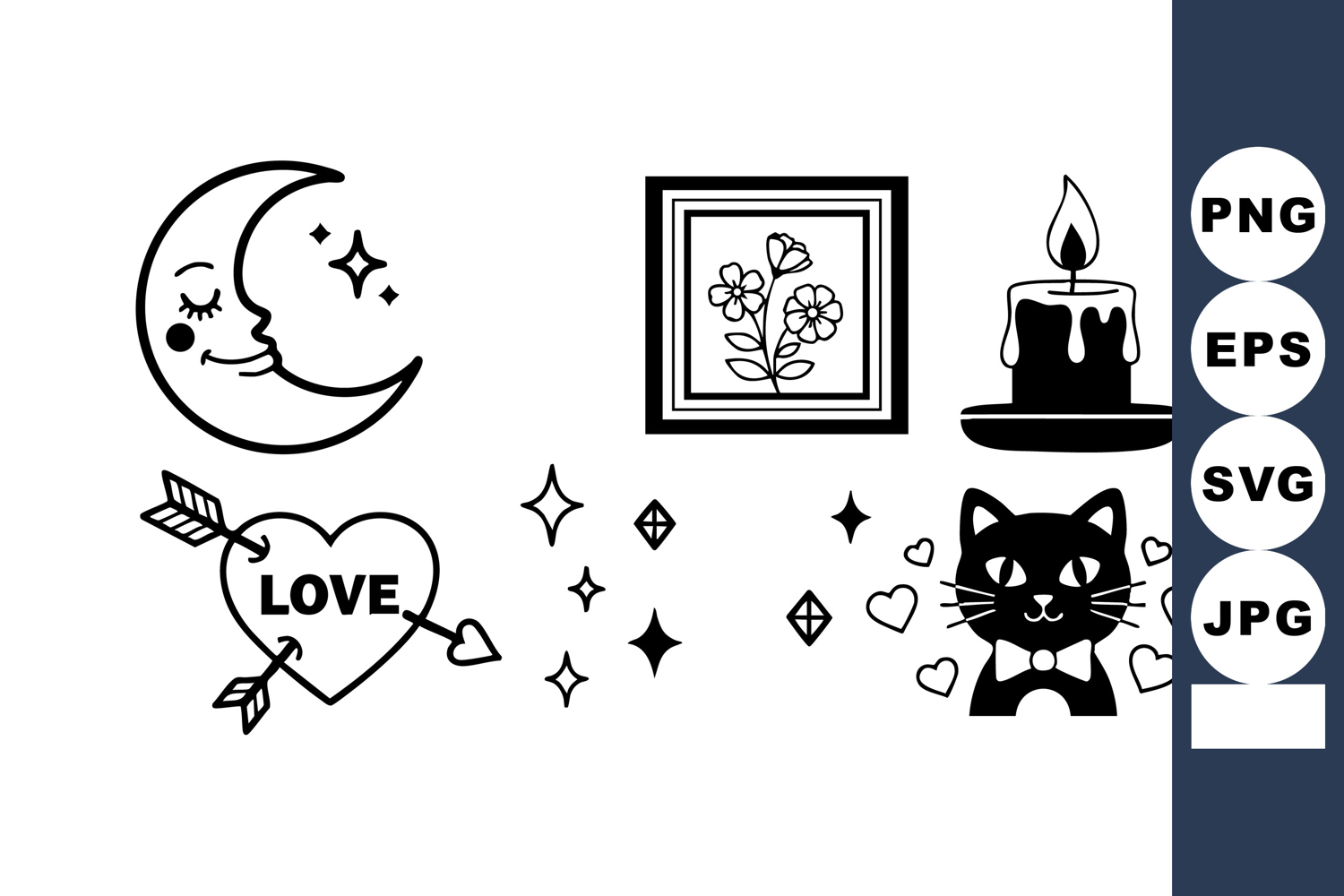 Illustration Vector Love Flower Heart Arrow Frame Cat Candle Moon