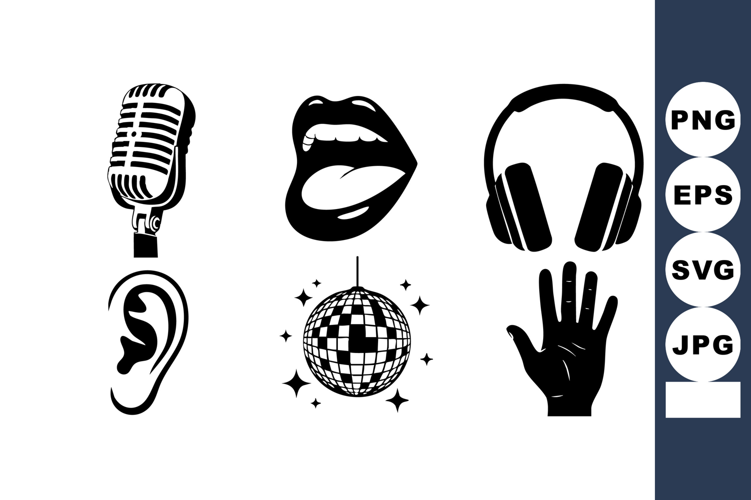 Hand Icon Music Disco Silhouette Headphones Ball Microphone Lips Ear