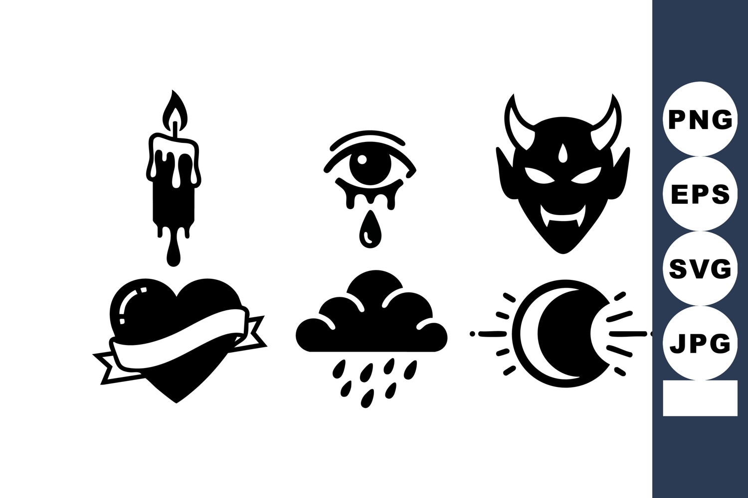 Gothic symbols set with candle heart eye rain cloud devil an example image 1