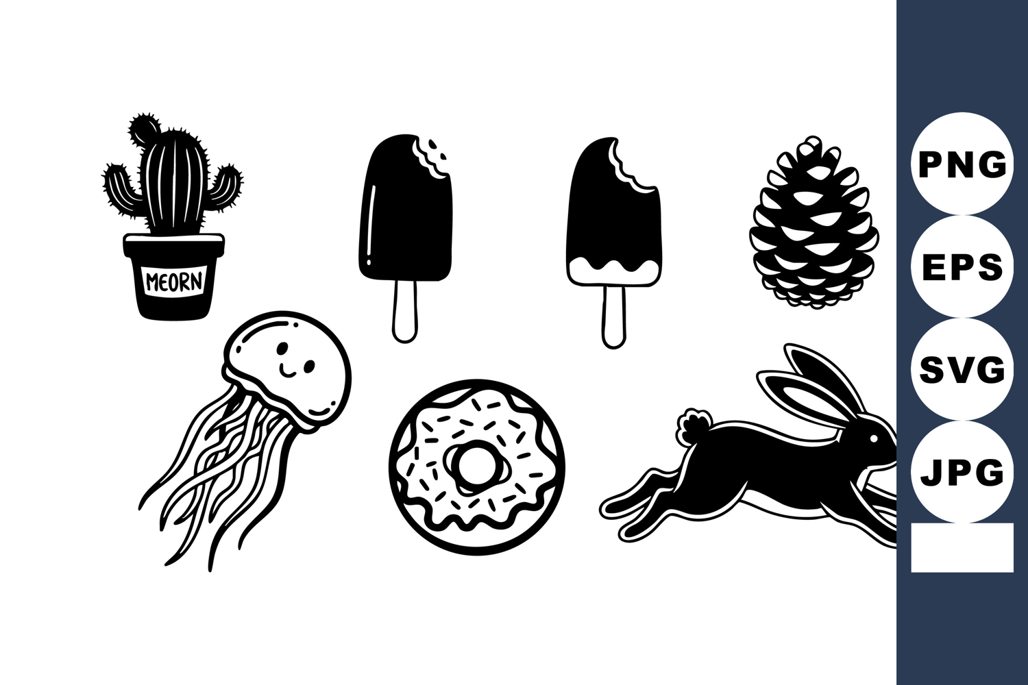 Illustration Donut Vector Black White Ice Cream Rabbit Pine Cone Cactus Jellyfish