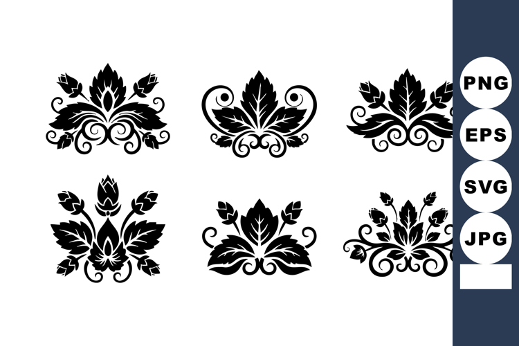 Vector Black Design Nature Leaf Floral Pattern Decoration Element Motif
