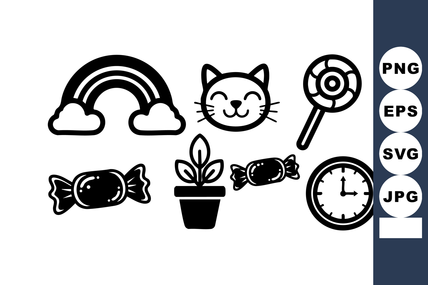Vector Icon Outline Candy Plant Cat Clock Rainbow Pot Lollipop