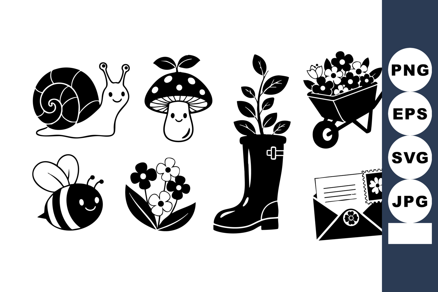 Icon Flower Garden Plant Mushroom Snail Bee Envelope Boot Wheelbarrow