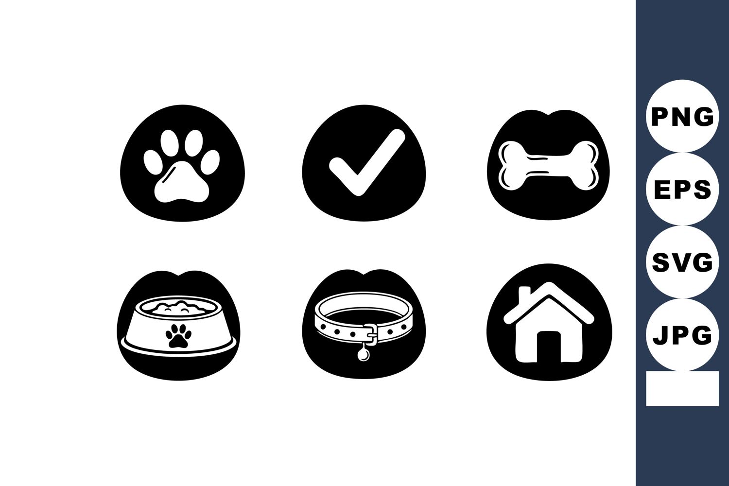 Pet care icons set with paw print, check mark, bone, food bo example image 1