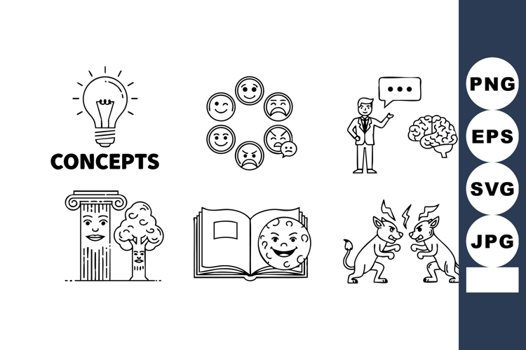 Concepts icons set with lightbulb brain emotions book devil example image 1