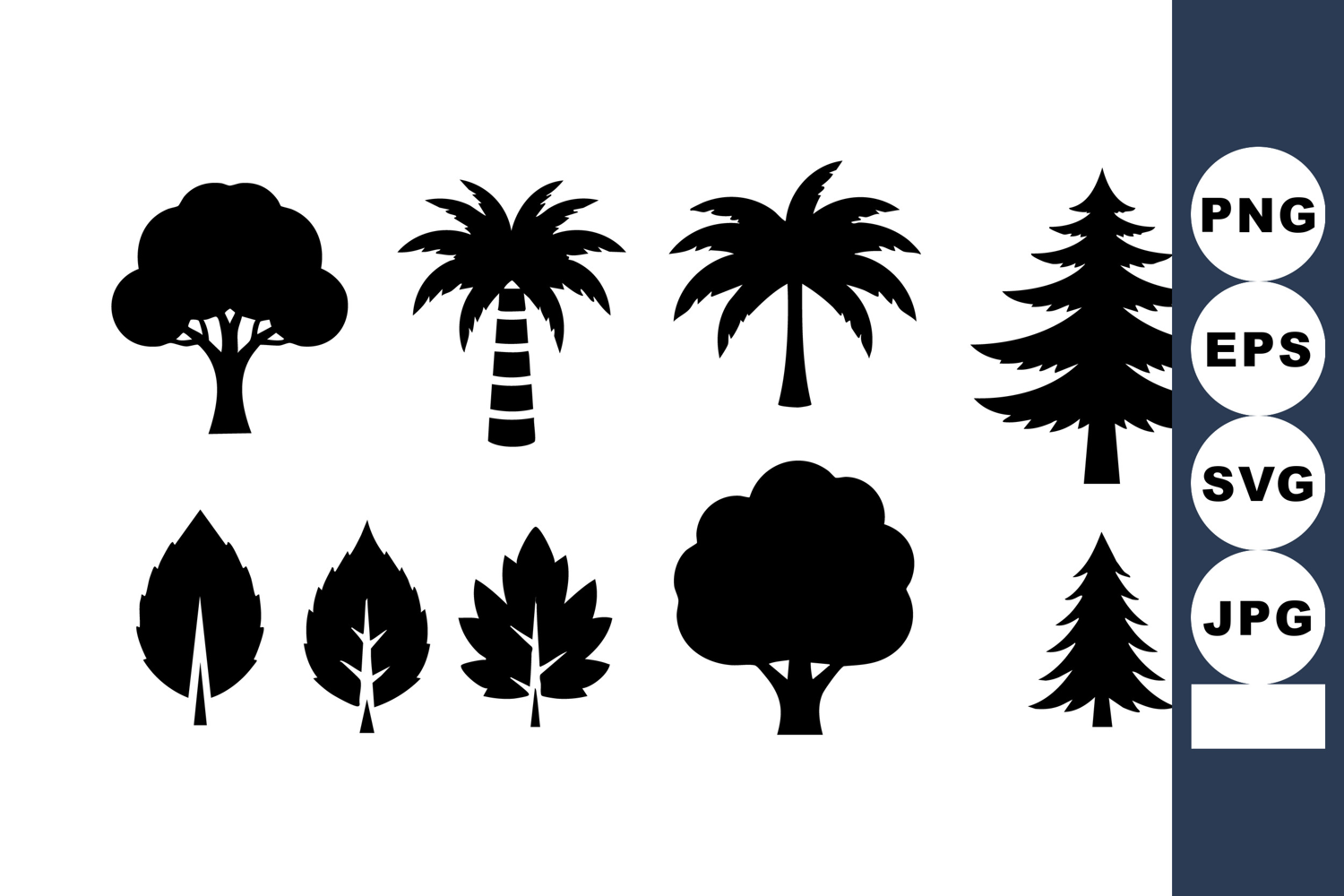 Tree silhouette collection with various leaf and palm tree s example image 1
