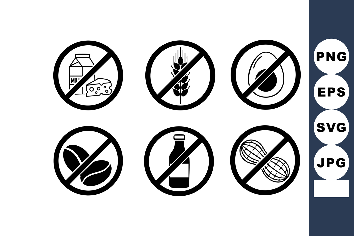 Food Free Icons Wheat Milk Egg Peanut Soy Allergy Allergen