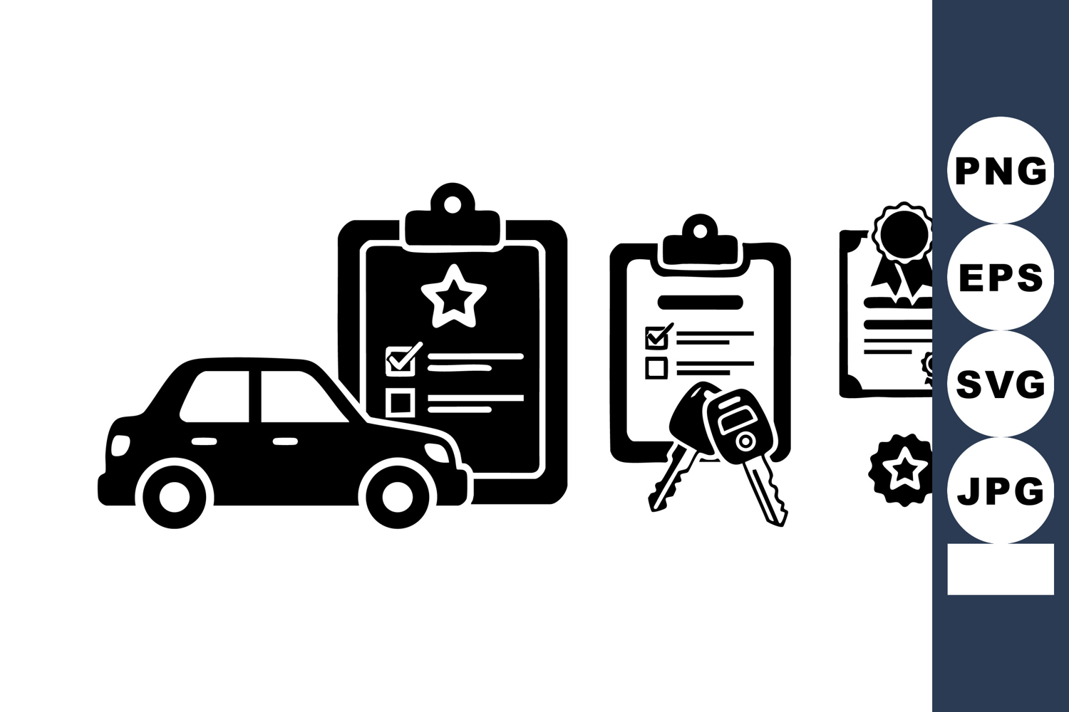 Icon Silhouette Car Vehicle Safety Keys Inspection Certificate Checklist Approval