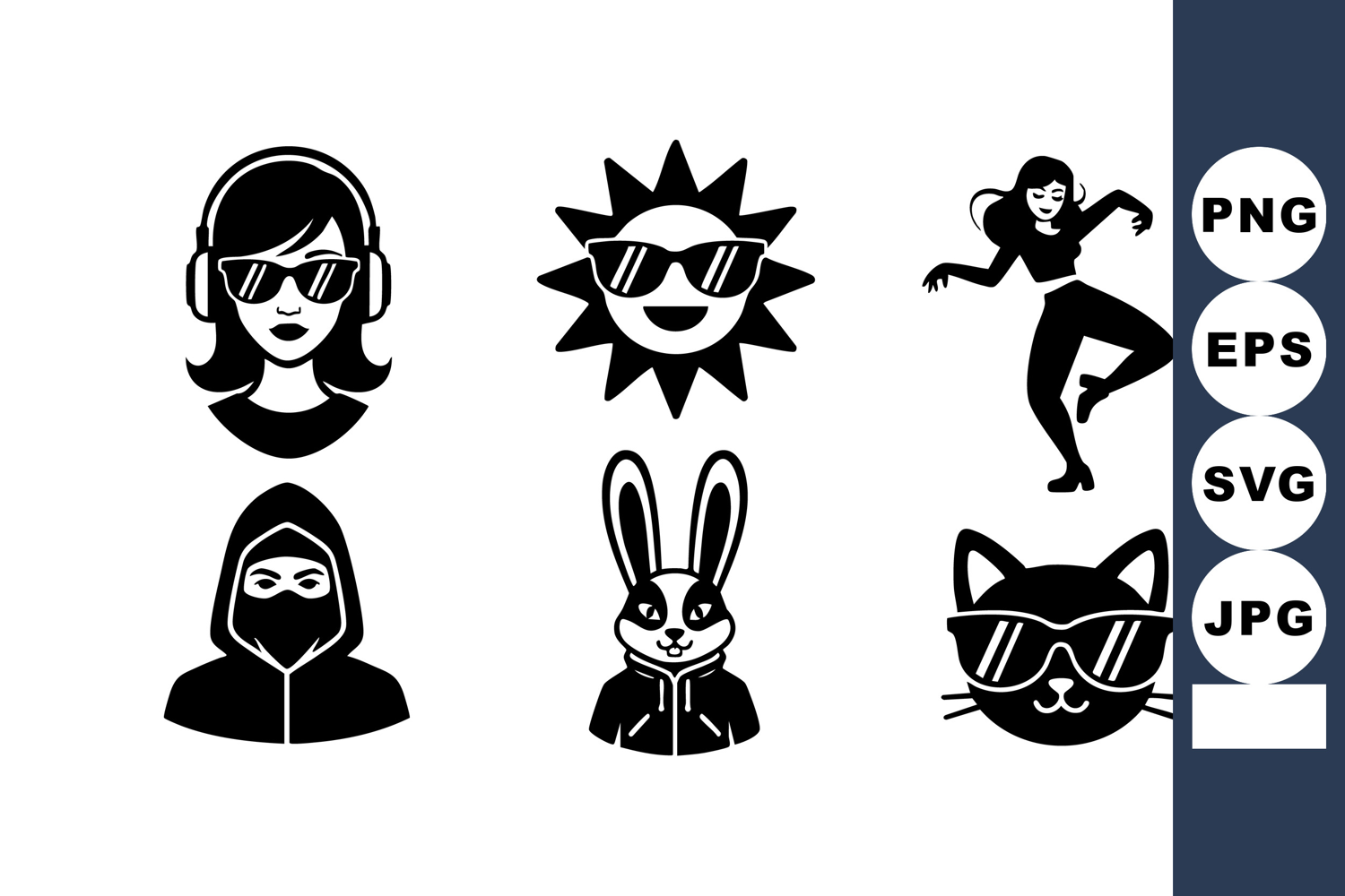 Hipster Icon Sun Woman Headphones Cat Rabbit Ninja Sunglasses Dancer