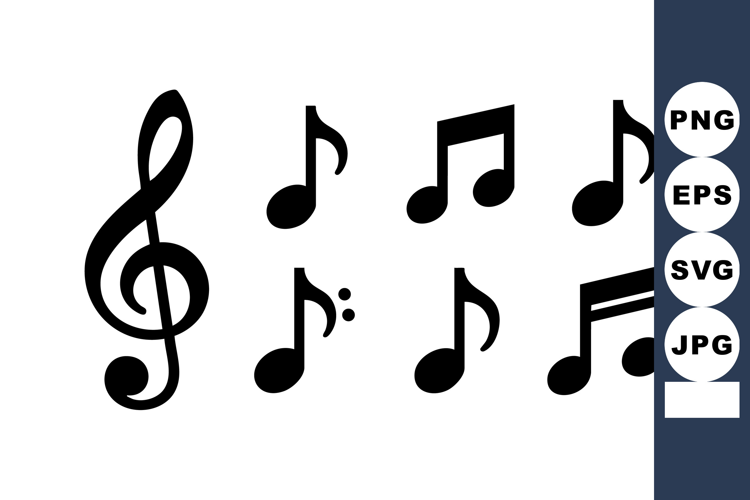 Simple Black Music Notes and Treble Clef Icons example image 1