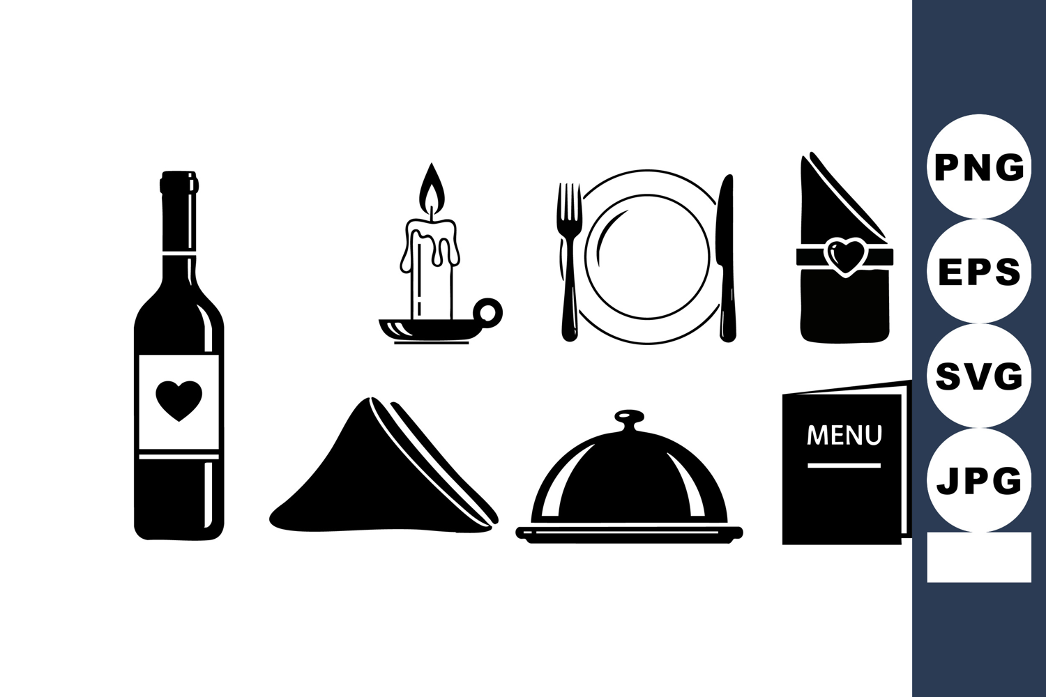 Restaurant Dinner Set Wine Candle Plate Icons example image 1