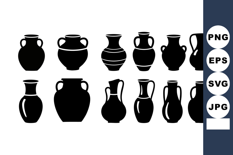 Ancient Black Vase Silhouettes Vector Art example image 1