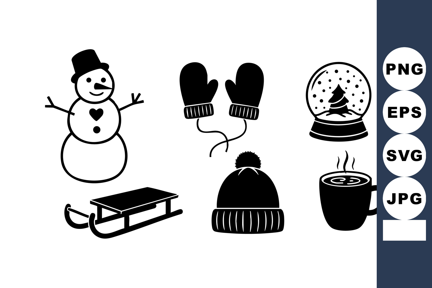 Winter Snow Globe Winter Hot Drink Winter Holiday Icons Holiday Snowman Mittens Snowman Hat Sled Sled Snow Globe Snow Globe Drink Hot Drink Vector Black Winter Icons Festive Holiday Icons