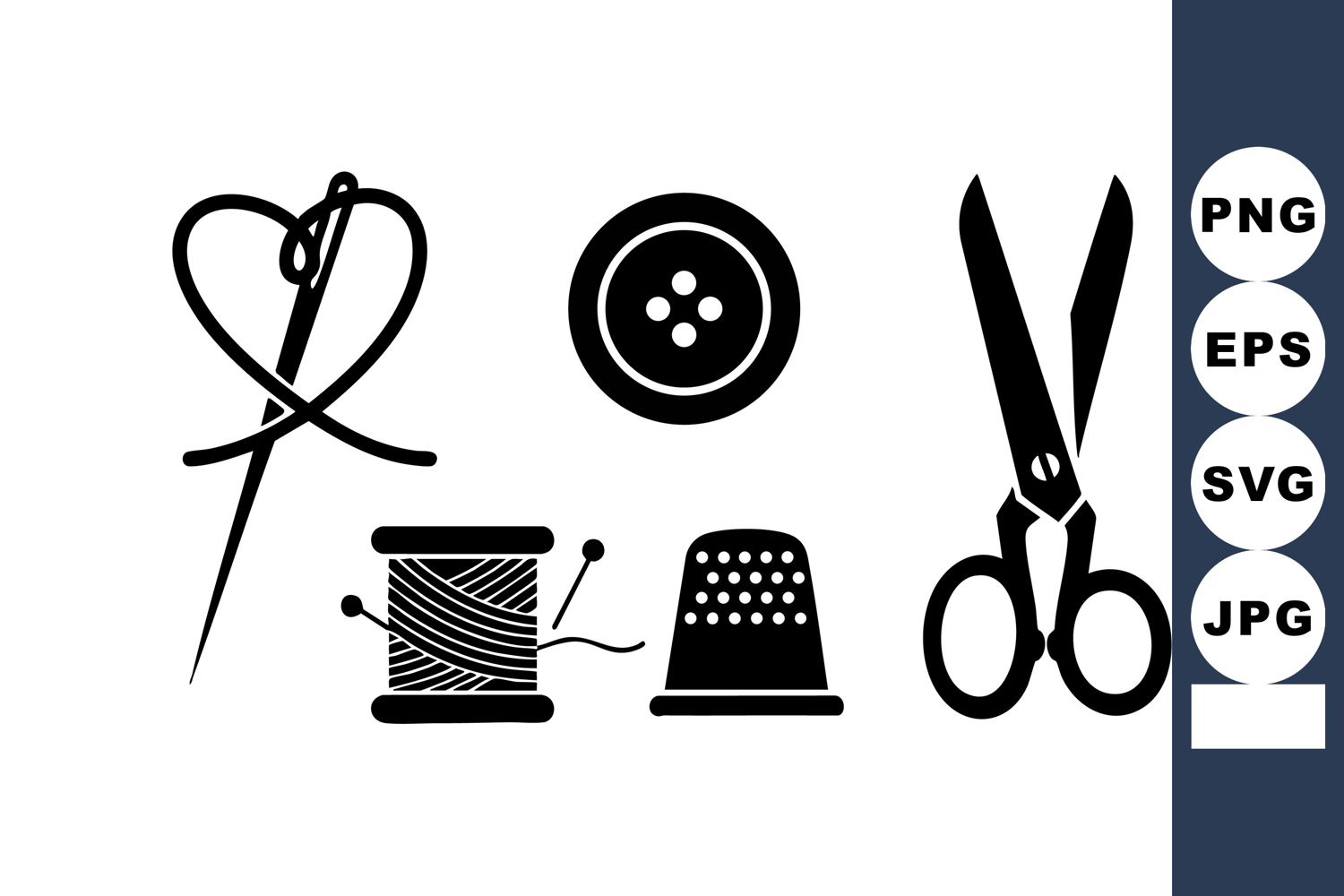 Needle Thread Scissors Button Thimble Spool Vector Icons