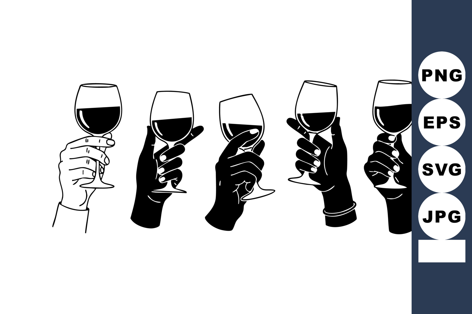 Similar Design Products to Hands Holding Wine Glasses Black White Vector Illustration