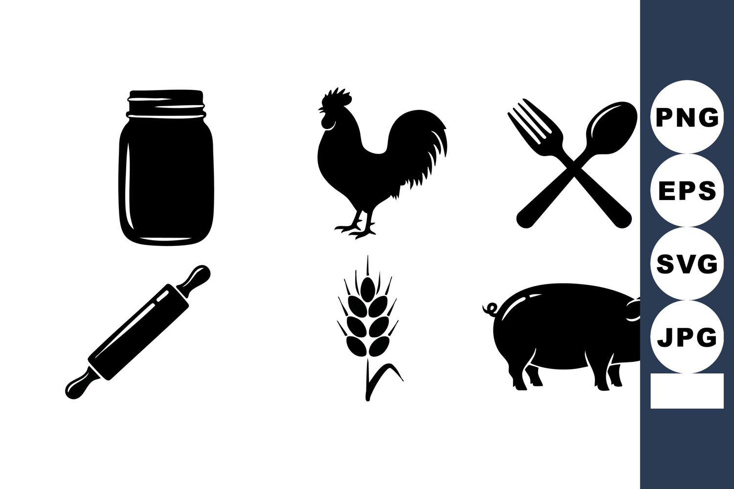 Black Cooking Icons Rustic Kitchen Icons Farm Animal Icons Kitchen Cooking Set Vector Cooking Illustration Jar Rooster Fork Spoon Rolling Pin Wheat Pig Silhouette Bold Cooking Icons Simple Kitchen Icons