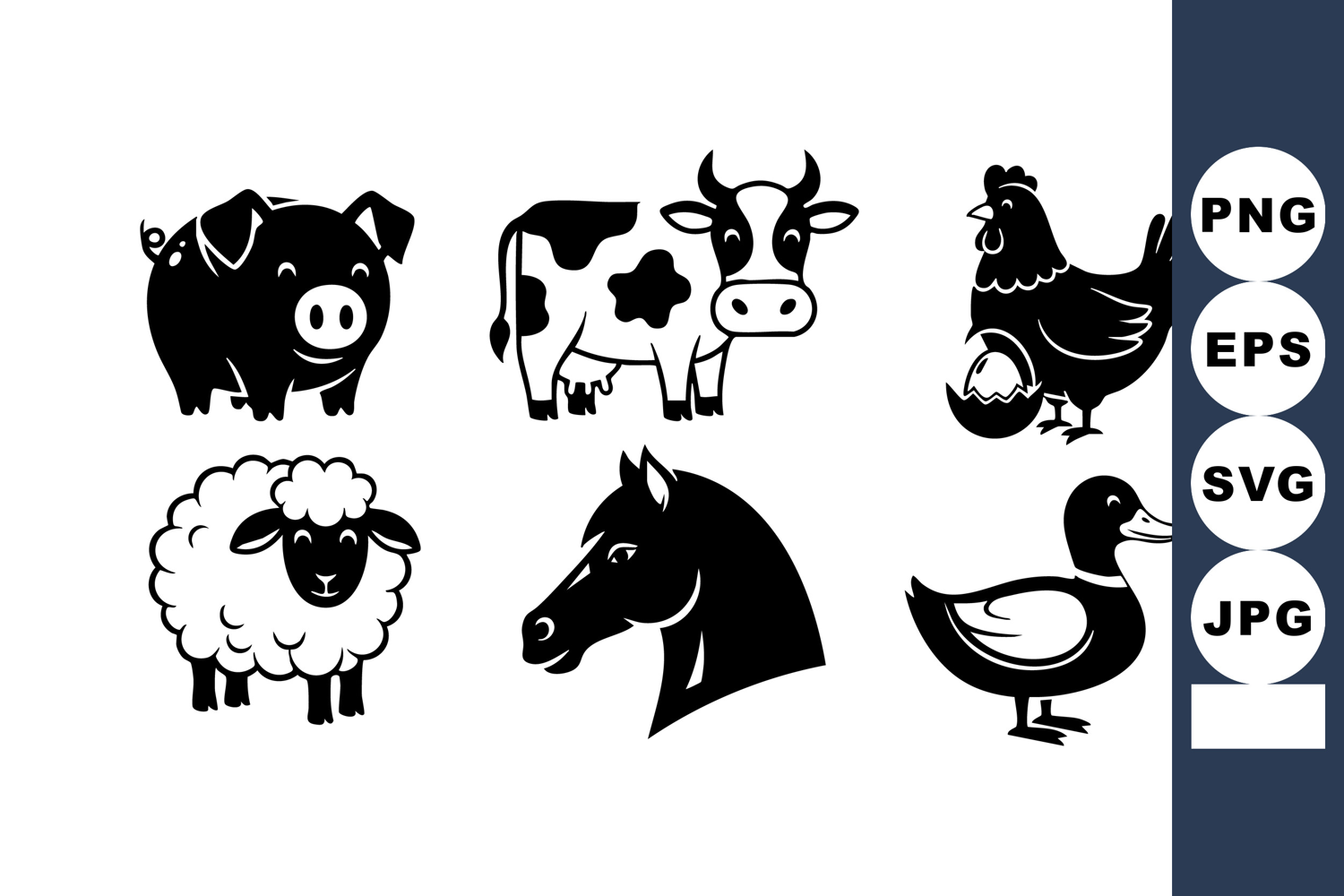 Farm Animals Pig Cow Chicken Sheep Horse Duck Silhouettes