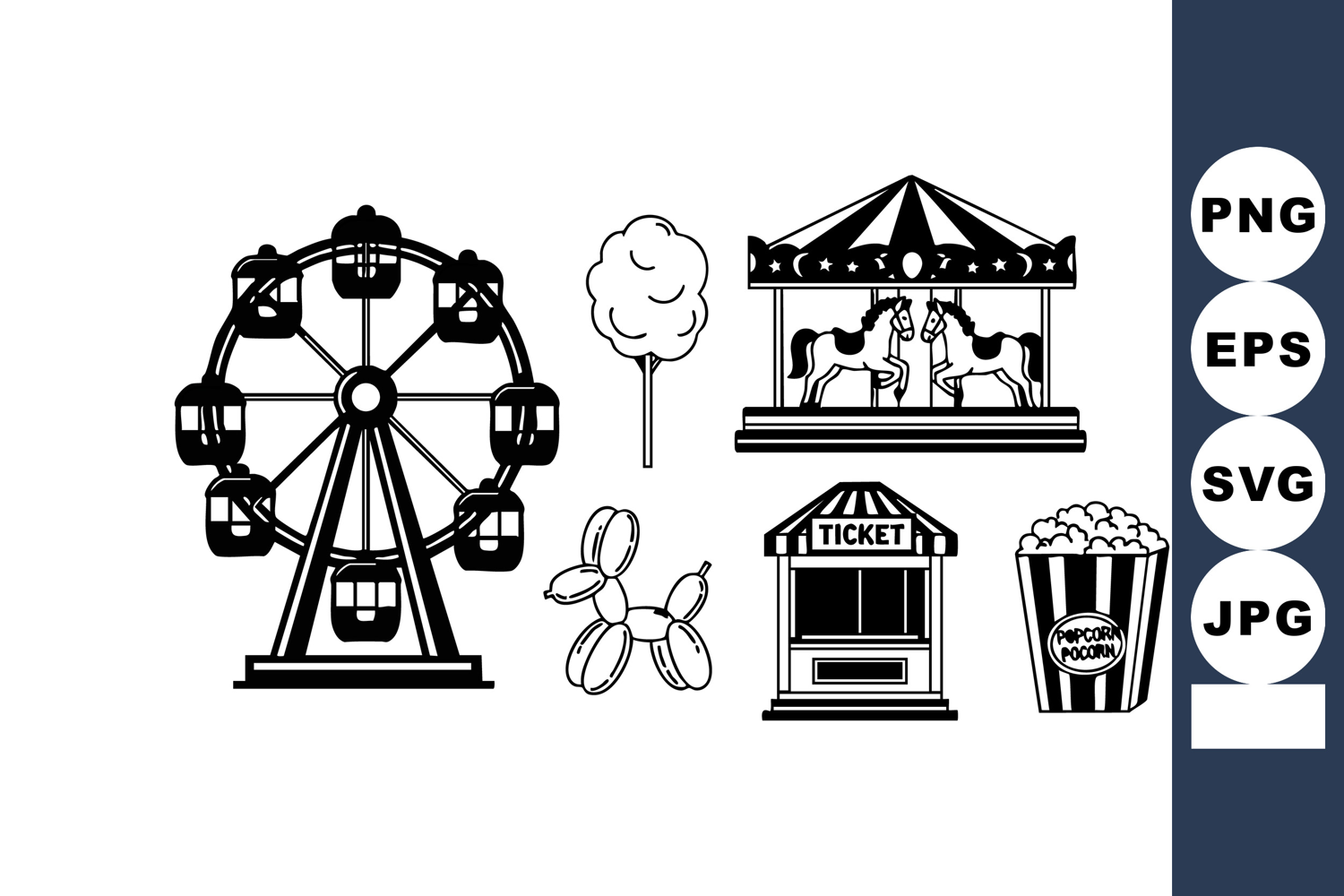 Black White Style Amusement Park Carnival Carnival Ferris Wheel Ferris Wheel Carousel Carousel Ticket Booth Ticket Booth Popcorn Popcorn Balloon Animal Family Children Play Festival Fair Recreation Funfair Attraction Event