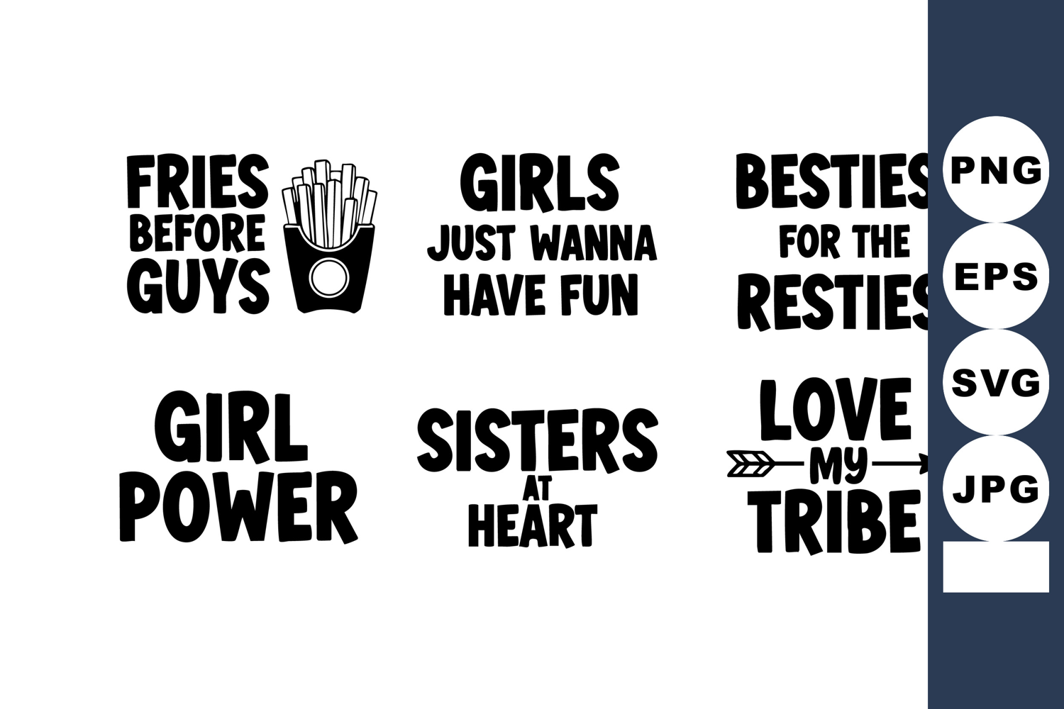 Girls Just Wanna Love My Tribe Fries Before Guys Girl Power Quotes Wanna Have Fun Besties For Resties Just Wanna Have Sisters At Heart Friendship And Fun Simple Black Text