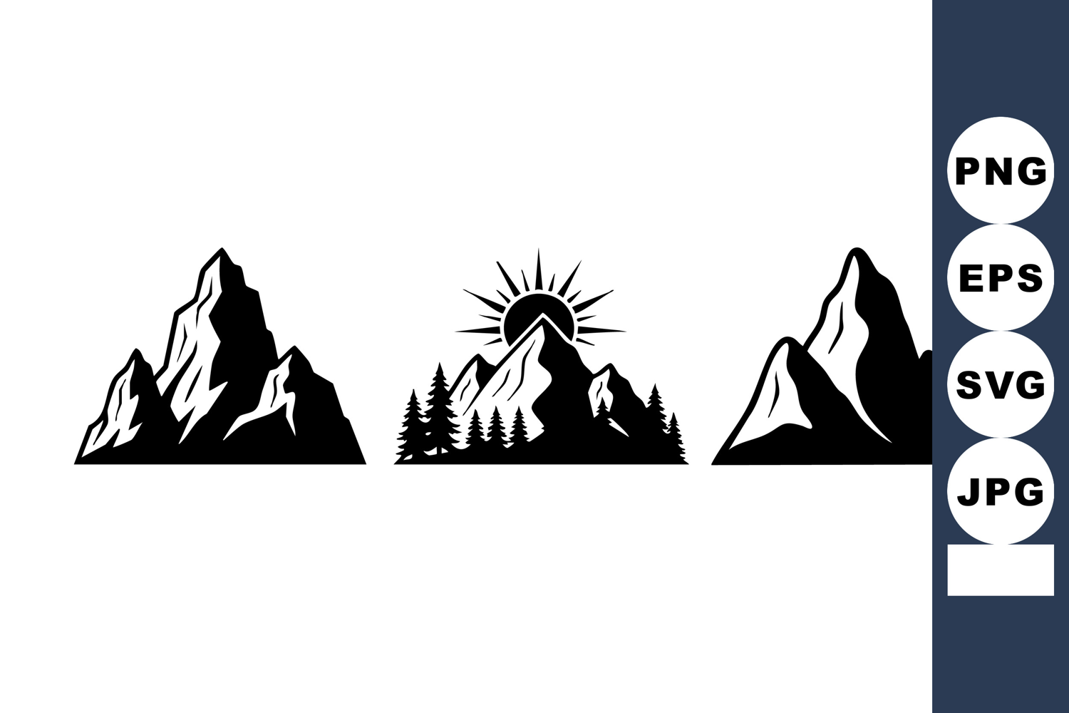 Mountain Silhouettes Sun Pine Trees Vector Set example image 1