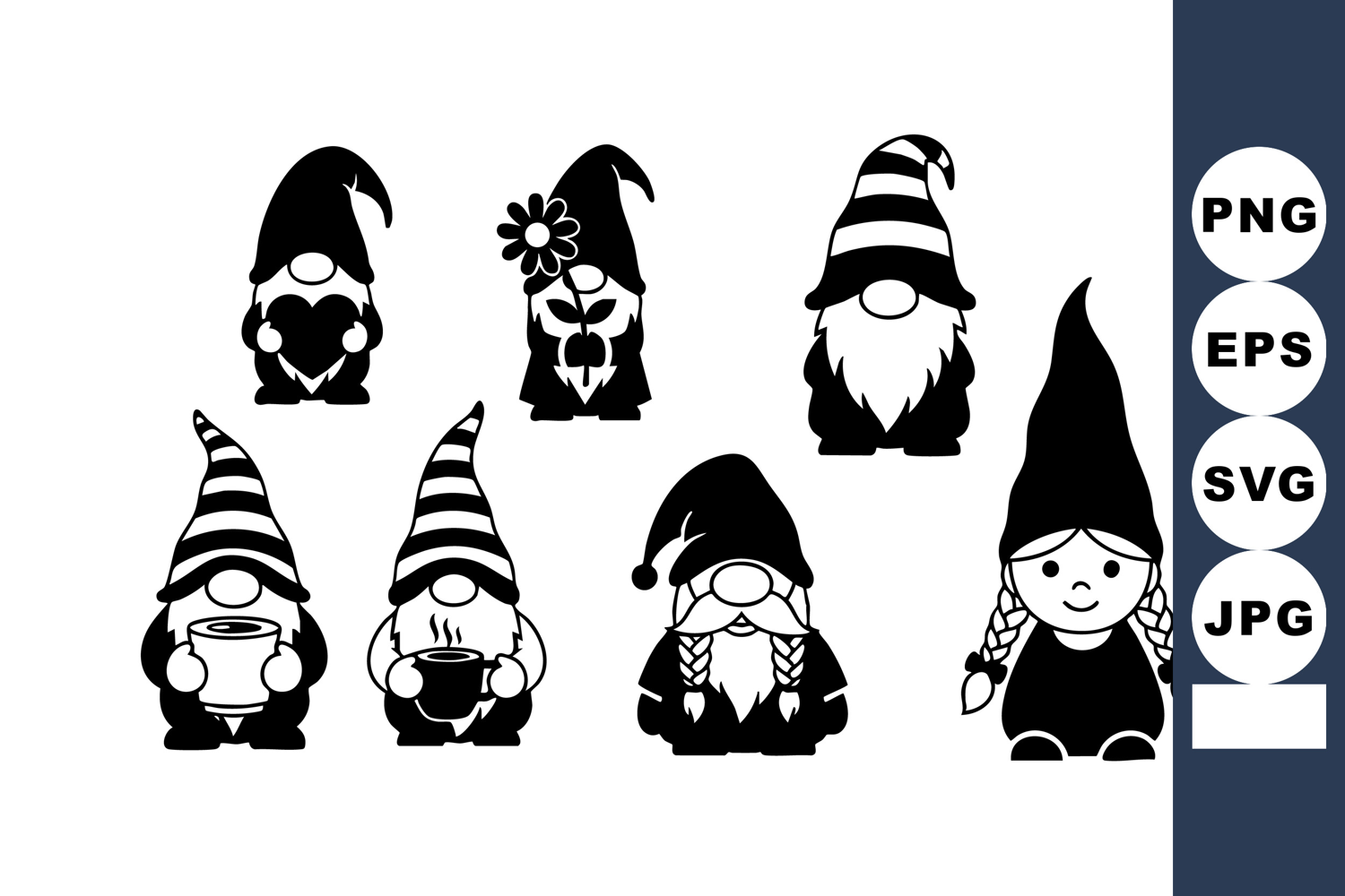 Similar Design Products to Seven Black White Cartoon Gnomes Vector Illustration