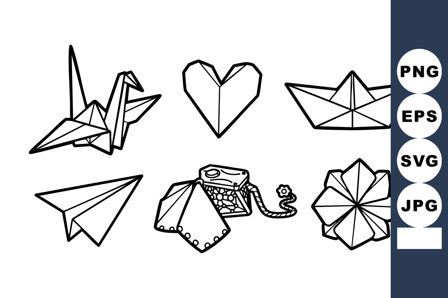 Paper Plane Vector Line Art Style Black White Line Origami Paper Figures Paper Crane Heart Heart Boat Flower Flower Crane Paper Crane Paper Plane Coin Purse Black Clean Simple Look