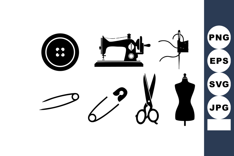 Safety Pin Vector Sewing Tools Button Button Scissors Mannequin Scissors Mannequin Needle Mannequin Needle Thread Needle Thread Safety Thread Safety Pin Pin Vector Illustration Black White Craft Craft Tailor Fashion