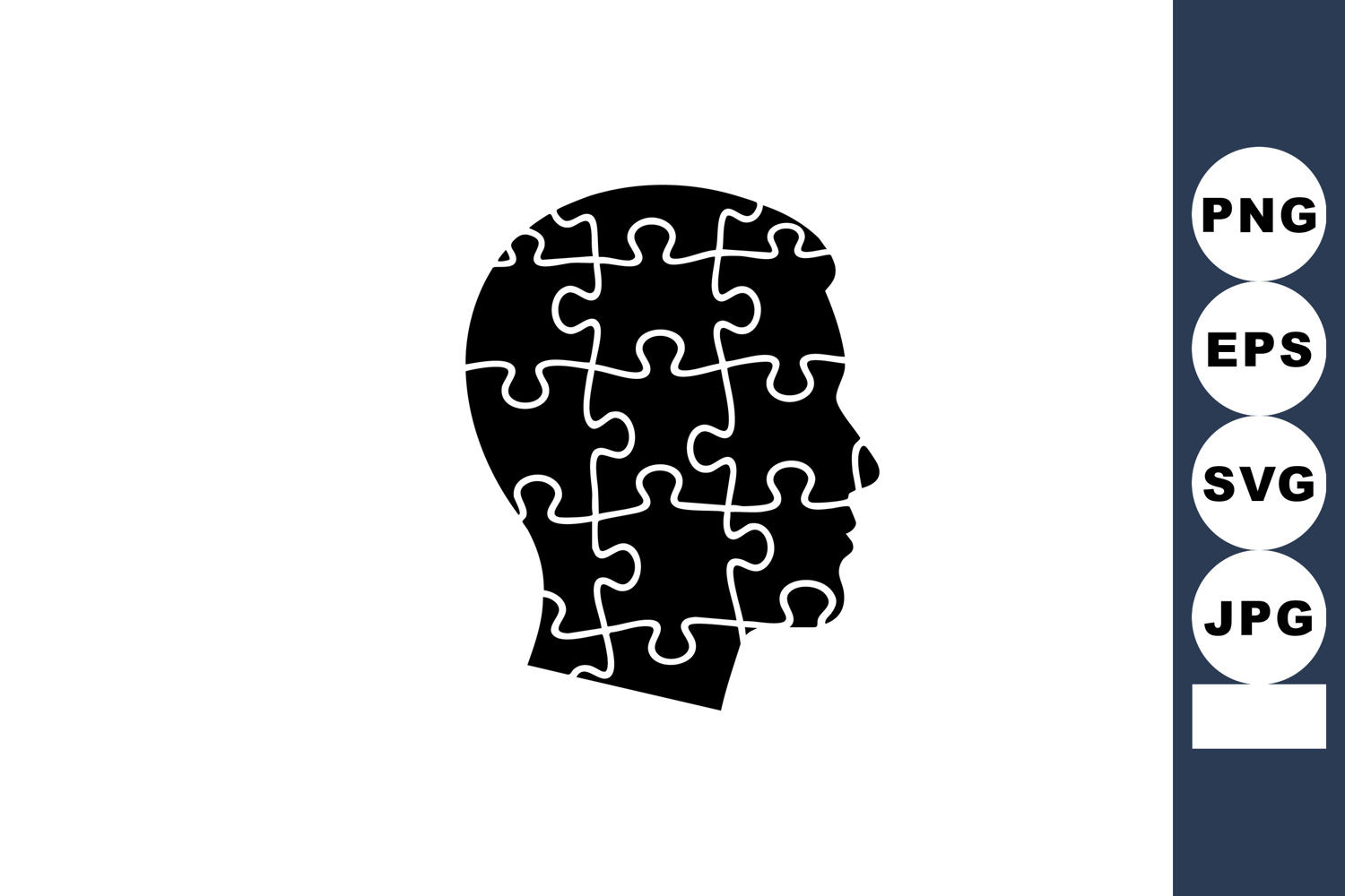Mental Health Concept Human Head Silhouette Puzzle Pieces Mental Black Human Head Head Silhouette Puzzle Interlocking Puzzle Pieces Mental Health Cognition Minimalist Vector Style Clear Contrast Clean Clean Lines Calm