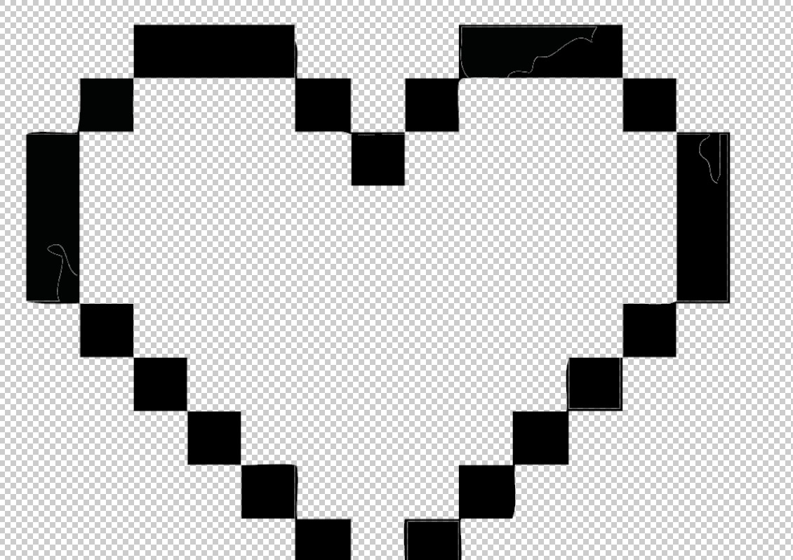 Weird lines missing in the middle of the design on the 8 bit heart. Edge lines are also not straight/clean which is not in line with 8 bit / pixel animation.