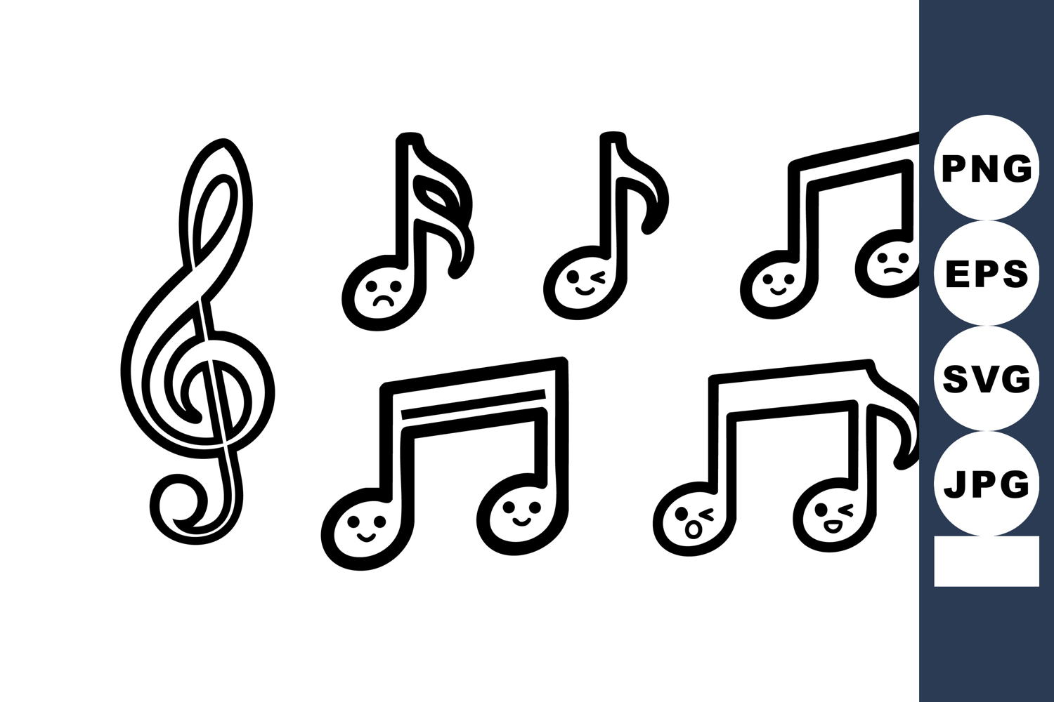Music Notes Treble Clef Black Outline Vector Illustration example image 1
