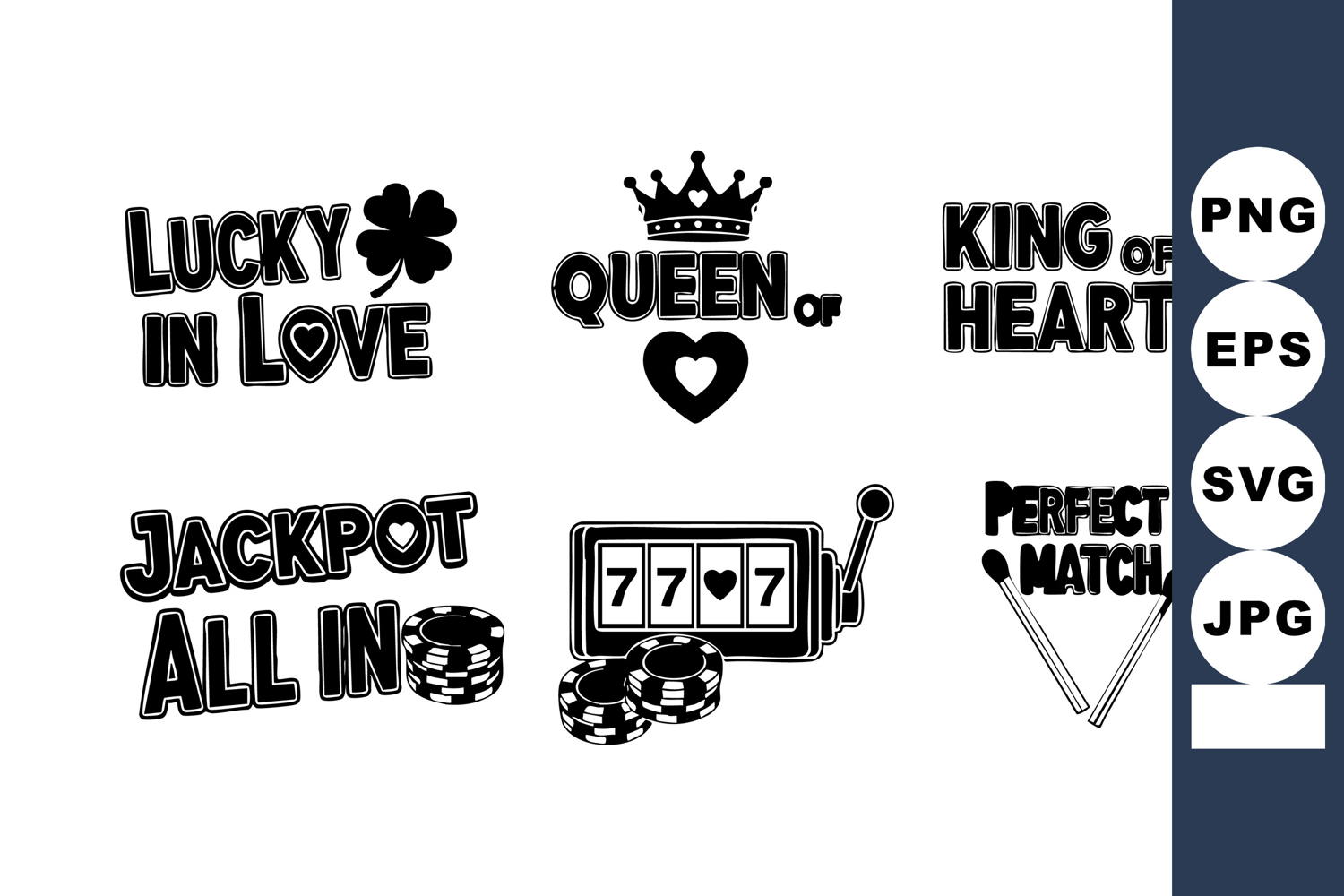 Black And White Queen Of Hearts Lucky In Love Jackpot All In Perfect Match Icons Casino Gambling Symbols Slot Machine Icons Playful Design Mood Poker Chips Symbols Seven Reel Slot