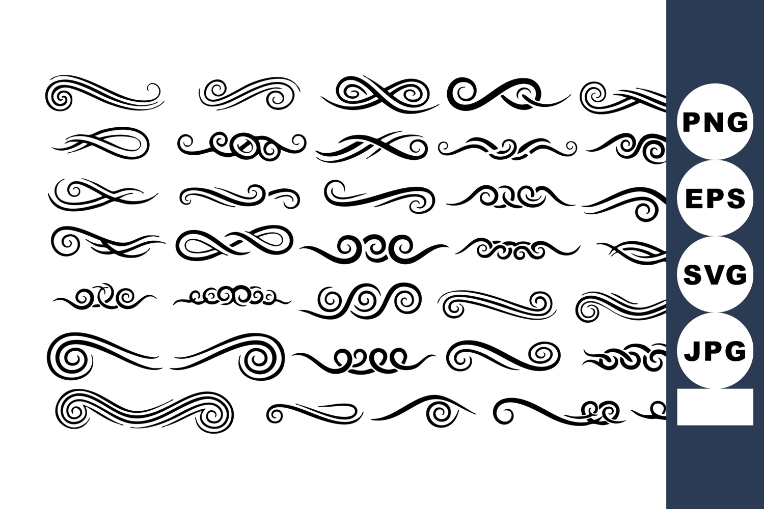 This vector collection features decorative ornamental swirl designs ideal for vintage style and elegant divider elements in graphic projects creating a classic sophisticated mood.
