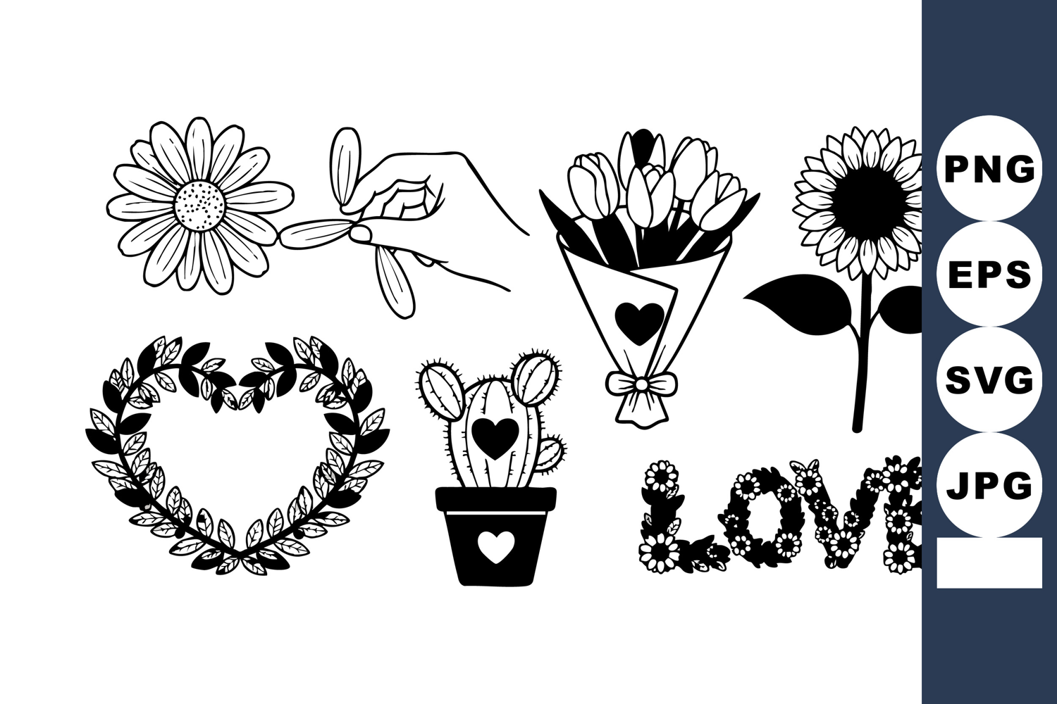 Heart Shaped Wreath Flower Garden Nature Black White Vector Hand Watering Flower Daisy Flower Cactus Flower Cactus Pot Cactus Bouquet Tulip Bouquet Tulip Sunflower Wreath Love Text Simple Style Calm