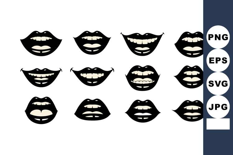 Black Lips Vector Lips Open Mouth Vector Lips Illustration Flat Style Lips Expression Lips Design Mouth Open Vector Lips Closed Vector Smiling Lips Icon Female Lips Art Modern Lips Graphic