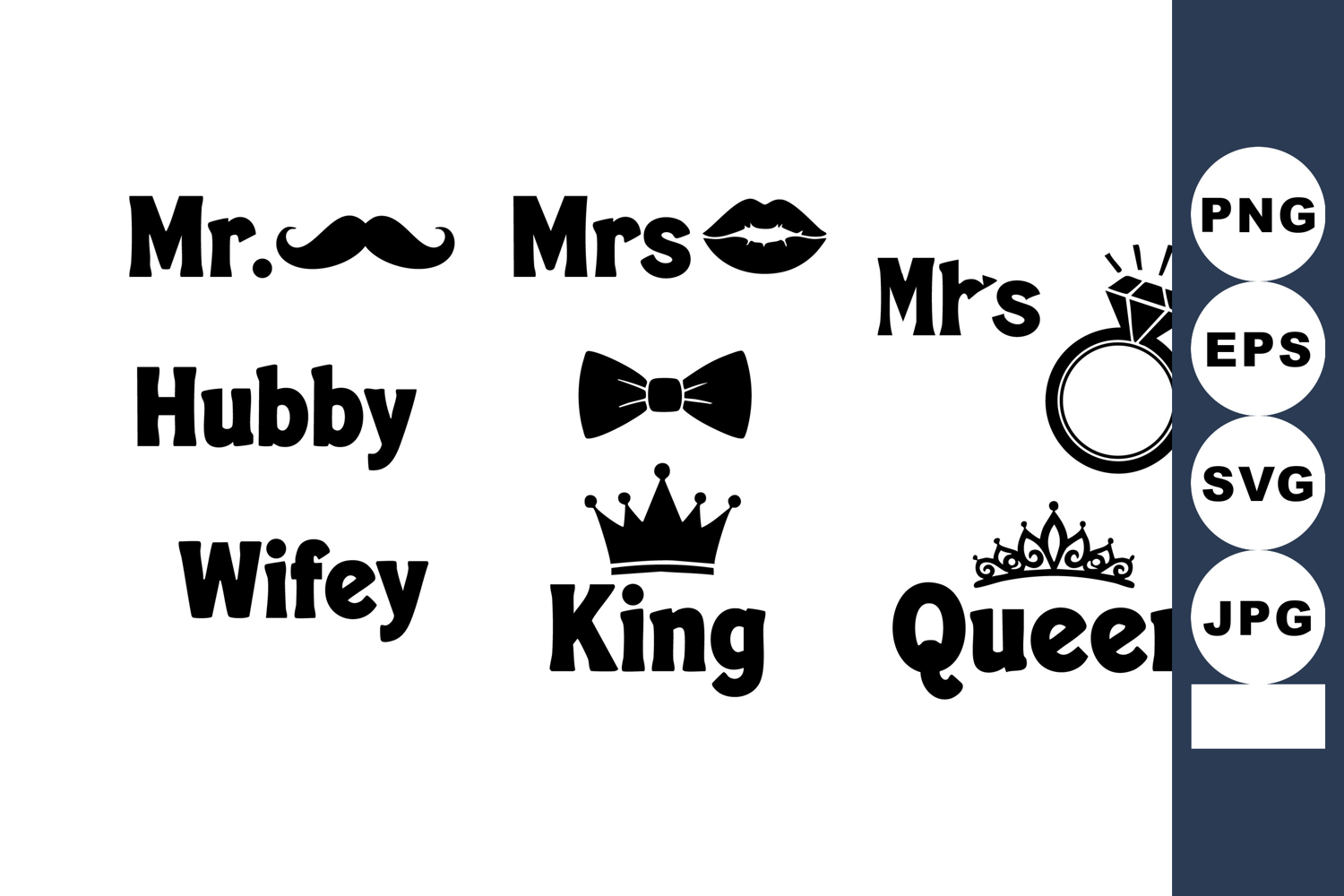 Wedding Couple Titles King Queen Symbols Vector example image 1