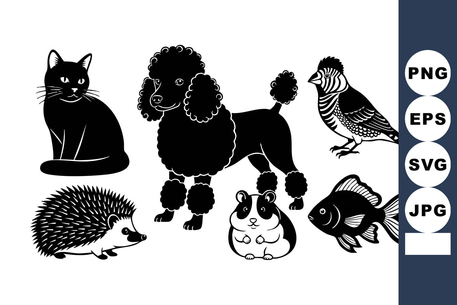 Animal Silhouette Vector Black Silhouette Cat Black Silhouette Poodle Black Silhouette Bird Black Silhouette Hedgehog Black Silhouette Hamster Black Silhouette Goldfish Pet Silhouette Set Silhouette Animal Illustration Simple Animal Shapes